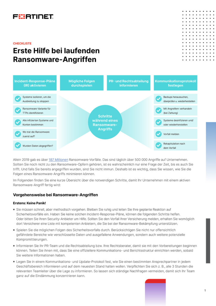 Niemand bleibt von Angriffen verschont – aber nicht jeder weiß, wie man am besten darauf reagiert. Entscheidend ist, dass Sie den Schaden schnell und systematisch eindämmen. Diese Checkliste bietet praktische Tipps für das beste Vorgehen, wenn Sie von Ransomware betroffen sind, wie z. B.: